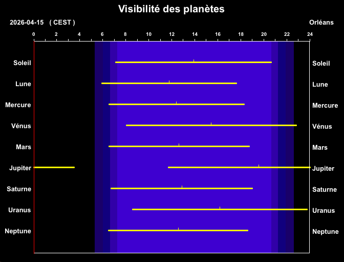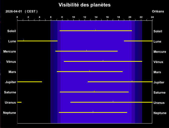 Pour les planètes extérieures (Mars, Saturne, Jupiter, Uranus et Neptune), l’élongation peut atteindre 180°. On parle alors d’opposition, lorsque la planète se trouve à l’opposé du Soleil dans le ciel et est observable toute la nuit.