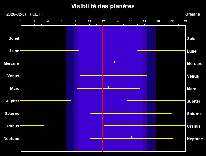 Vénus, trop proche du Soleil, ne sera pas visible, tout comme Mars qui ne fera pas son apparition avant le mois de mai.