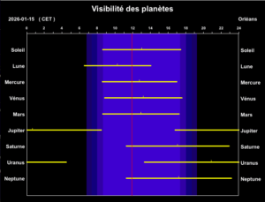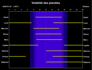 | 10 janv. | Jupiter à l’opposition dans les Gémeaux (voir Focus) | – | Telescope |