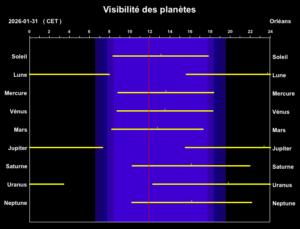 | 30 janv. | Nouveau rapprochement entre la Lune et Jupiter | – | A l’œil nu |